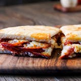 House braised short rib, cheese raviolis, house marinara, caramelized onions, bell peppers, mozzarella cheese.