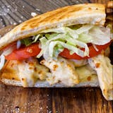 Diced chicken breast, baked with fox’s cheese blend, then topped with lettuce, tomato, and mayo.